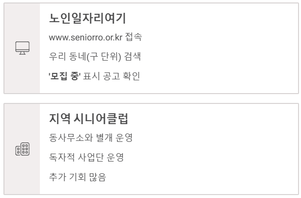 | 신청처 | 주민센터, 시니어클럽, 노인일자리 여기 |